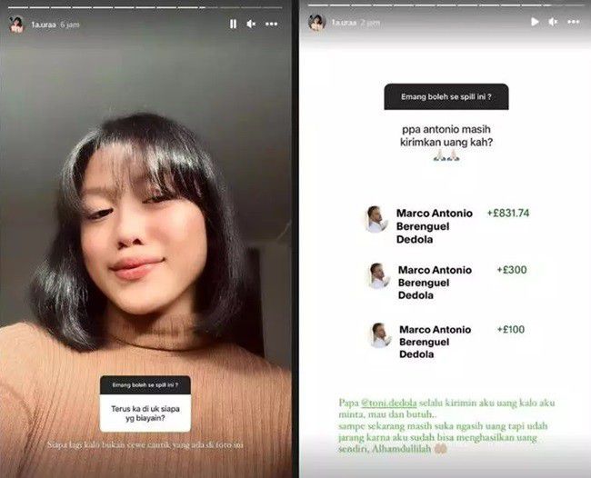Meski begitu, Lolly juga tidak menampik kalau dia juga kerap mendapatkan bantuan finansial dari Antonio Dedola, mantan suami ibunya yang masih berhubungan baik dengannya. Membuktikan ucapannya, remaja 16 tahun itu menunjukkan bukti transferan yang didapatkan dari Toni.