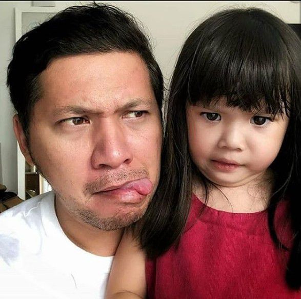 Gempi bisa berpose dengan ayahnya. Emang kompak ya ayah dengan anak.