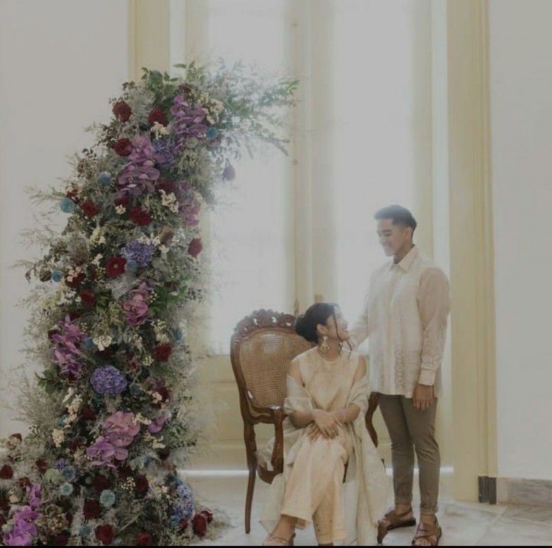 4. Kaesang dan Erina juga sempat foto di lokasi yang kelihatannya seperti teras istana bogor. Dengan pemandangan hamparan rumput hijau dan pohon-pohon rindang besar.