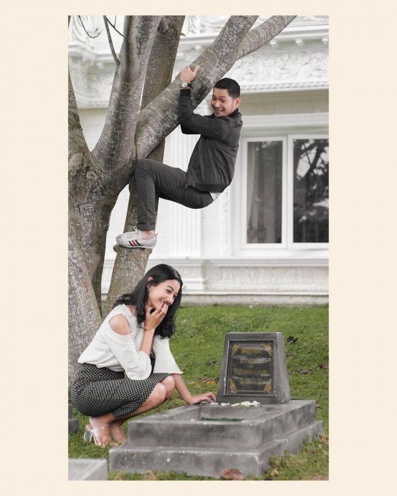 Kalau ini kocak abis sih, si Evan yang lagi pura-pura pose sedang buang air kecil dan Glenca yang nggak bisa nahan tawa lihat kelakuan Evan.