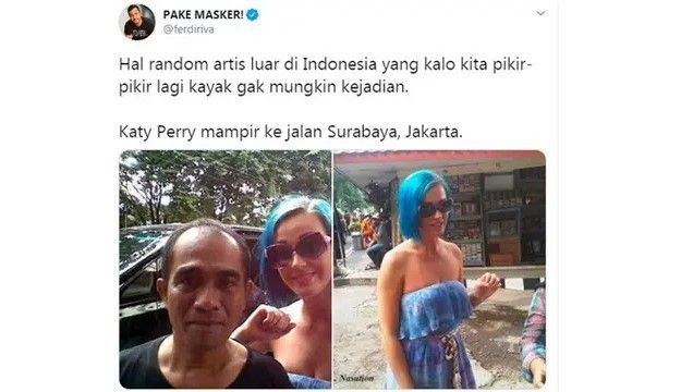 Kira-kira neng Katty Parry ngapain tuh ya foto ama mamang-mamang? Apakah dia sedang liburan di Surabaya?
