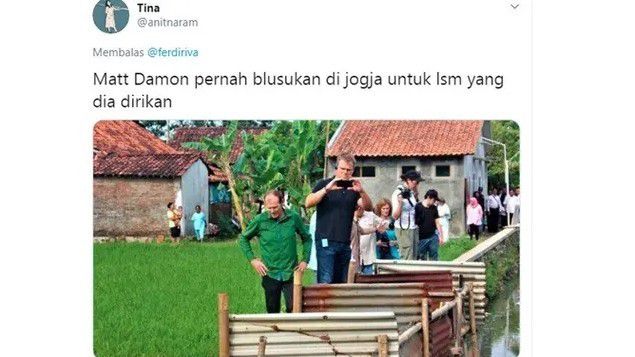 Rupa-rupanya Matt Damon pernah juga jalan di kawasan bagian pinggiran kota Jogja, untuk sebuah LSM yang dia dirikan. LSM? Jadi kepo, LSM-nya khusus memerhati atau menangani apa ya gengs?