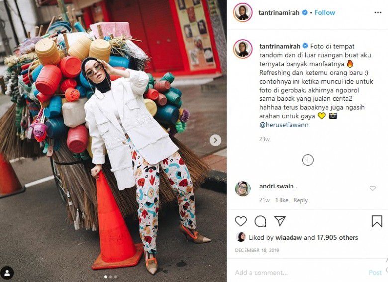 8. Kadang kalau pas lagi dandan biasa aja, doi tetep kece ya. Kayak gini misalnya. Cuma pakai overall garis-garis kemeja biru tapi kok lucu bingitzzzz.