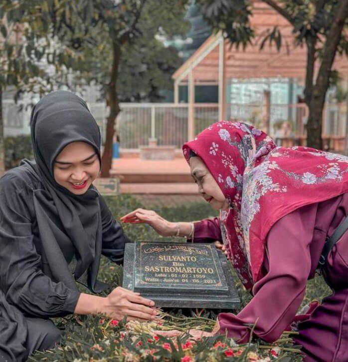 Saat itu, terlihat dirinya ditemani oleh sang ibu, Yunifah Lismawati. Ricis dan ibunya tampak berfoto sambil memegang nisan.