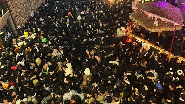 Lautan manusia saat acara perayaan Halloween di Itaewon (news.detik.com)