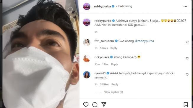 Robby Purba alami kecelakaan hingga tangannya harus dijahit (suara.com)