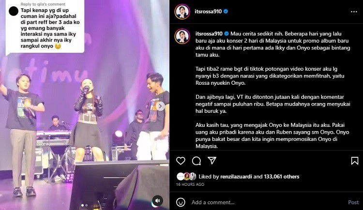 "Buat kalian yang udah nulis komentar jahat sama aku, semoga berani minta maaf di kolom komen, nanti aku maafin. Yang gak minta maaf gak akan aku maafin. Buat yang bikin konten, sampai ketemu, semoga cepat dipertemukan ya, biar aku kasih pelajaran. INDONESIA harus bebas dari orang2 penyebar HOAX dan perusak nama baik orang lain," pungkas Rossa.