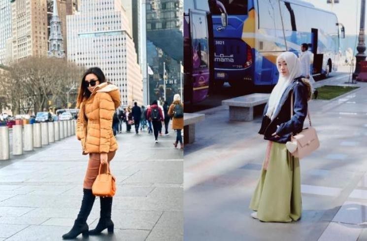 4. Sama-sama berlatar pepohonan, mantan istri Taqy Malik ini tampil modis mengenakan atasan berwarna hitam, bawahan bermotif dan boot merah panjang. Sedangkan, Larrisa Chou tampil anggun dan bersahaja dengan outfit berwarna biru tua yang diberi sentuhan manis sebuah mahkota bunga.