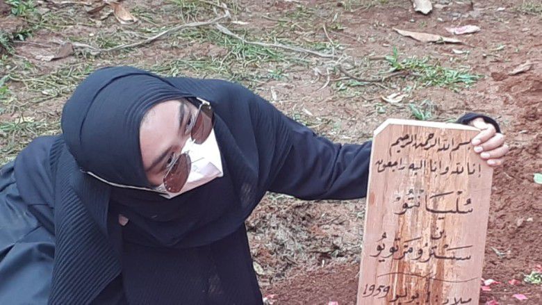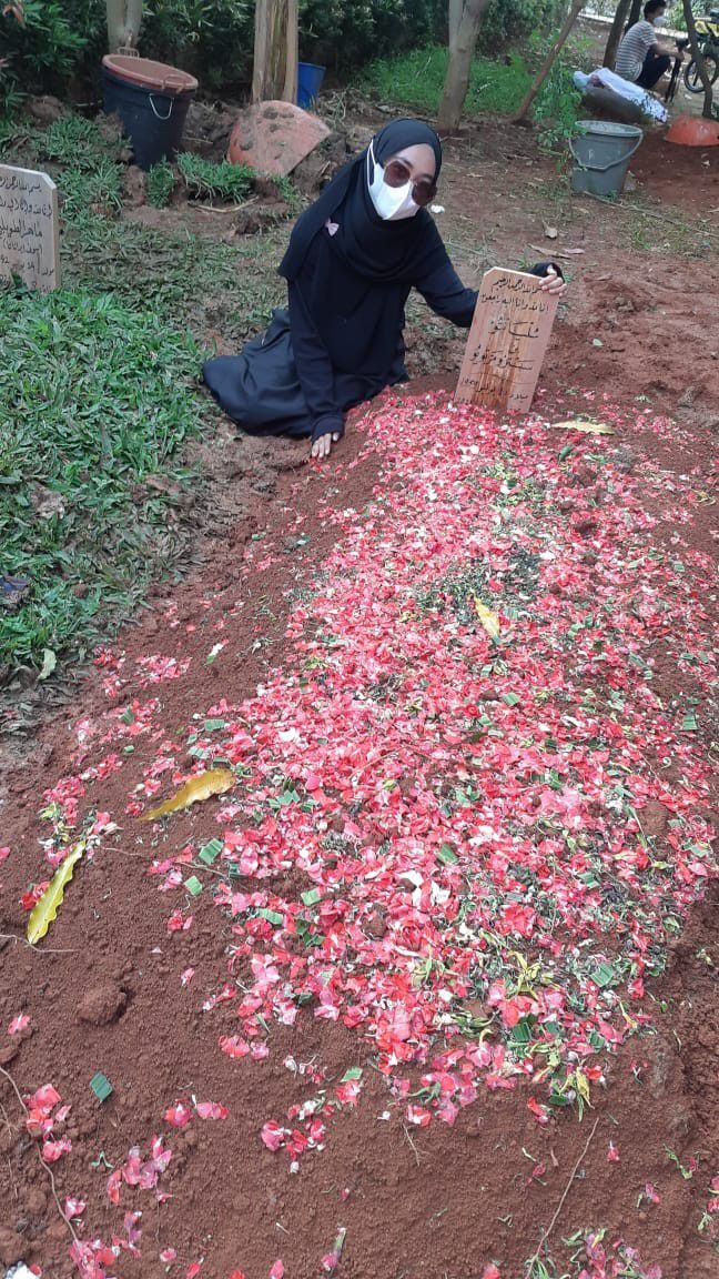 Ria Ricis tiba di makam sang ayah, Sulyanto di Pesantren Daarul Quran, Cipondoh, Tangerang pada Sabtu (5/6). Ricis tak datang sendiri, ia ditemani kedua kakaknya, salah satunya artis Oki Setiana Dewi.