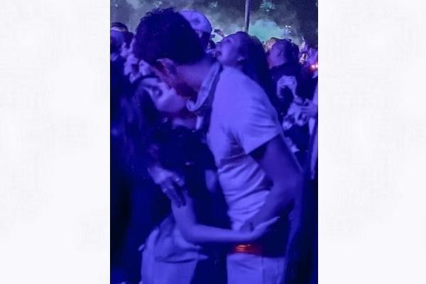 Dalam sebuah video yang direkam penggemar, mereka menari, memegang minuman, berpelukan, dan kemudian tampak berbagi ciuman.