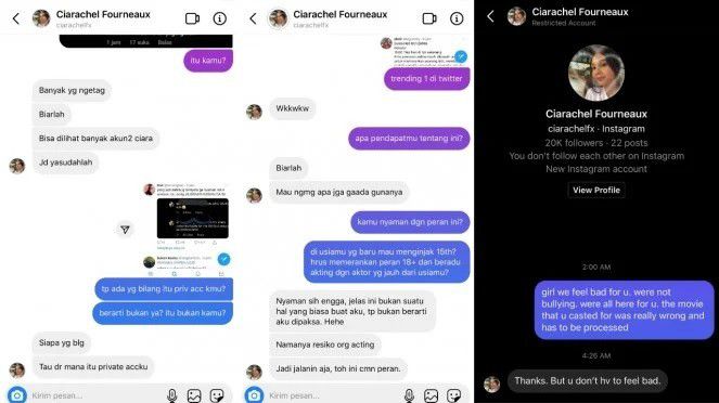 Baru-baru ini, memang beredar tangkapan layar percapakan akun yang mengatasnamakan Lea. Di dalamnya terlihat bagaimana sang artis melontarkan perasaannya sebagai pemeran yang melakoni peran jauh lebih dewasa darinya.