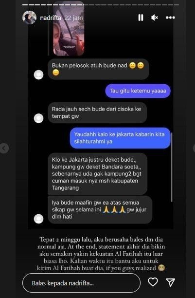 Sang haters yang awalnya menyinggung omongan Nadya Arifta yang menurutnya kurang sesuai, setelah dibalas dan diajak bertemu, kemudian meminta maaf.