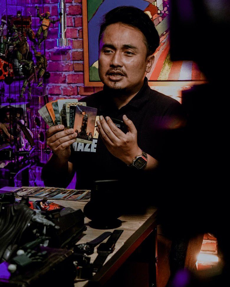 "Fantasi yang berbalik atau berpunggungan dengan realita," lanjut Denny seraya menunjukkan kartu Tarot yang dipegangnya.