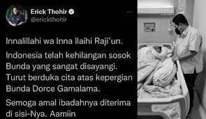 Ucapan belasungkawa Erick Tohir atas meninggalnya Bunda Dorce (inews.id)