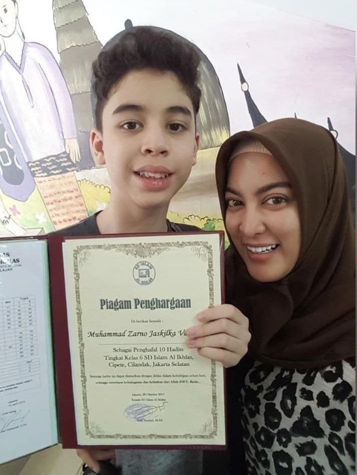 Zarno, Putra mendiang Jane Shalimar berhasil 1 juz Alquran setelah lulus sekolah dasar. Ia bahkan sempat mendapat piagam penghargaan karena berhasil menghafal 10 hadist.