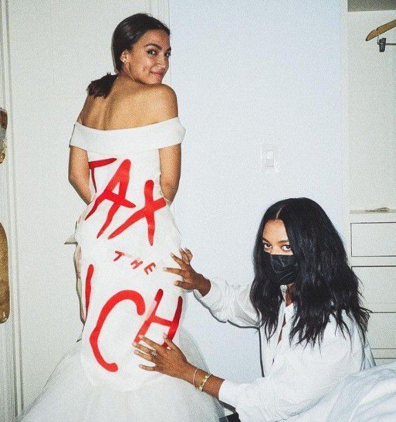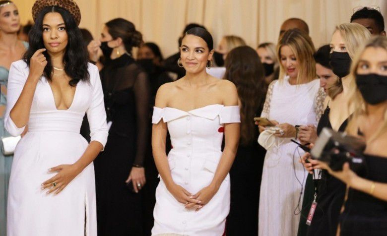 Alexandria Ocasio-Cortez menggunakan gaun yang menuai kritik saat hadir di ajang MET Gala 2021 (via instagram)