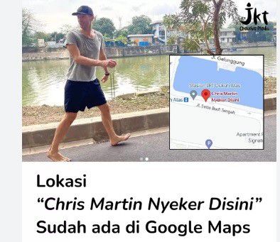 Dengan latar kemacetan di Jakarta, Chris nampak asyik menikmati JPO bersama manajer Coldplay itu. Netizen pasti langsung salah fokus justru ke bagian kaus Chris yang basah karena keringat. Jadi pada berebutan mau mengelap keringat Chris kan?
