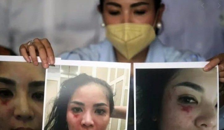 Nindy Ayunda saat menunjukkan bukti-bukti KDRT yang dialaminya (okezone.com)