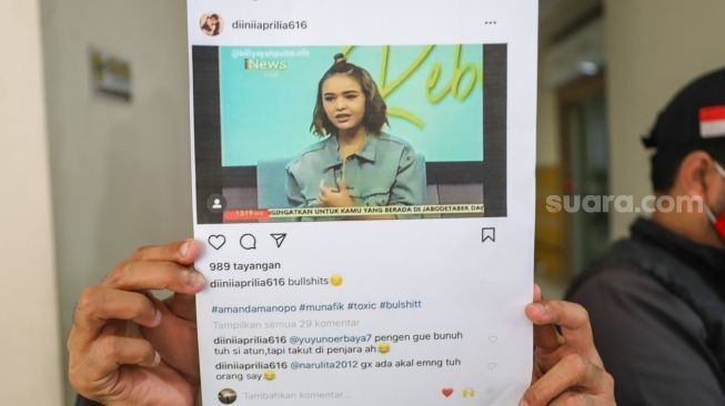 "Di sini dia (postingan) menulis ‘pengin gue bunuh si Atun tapi takut dipenjara ah’” kata Razman ditemui di kawasan Kuningan, Jakarta Selatan, Senin (22/2/2021).