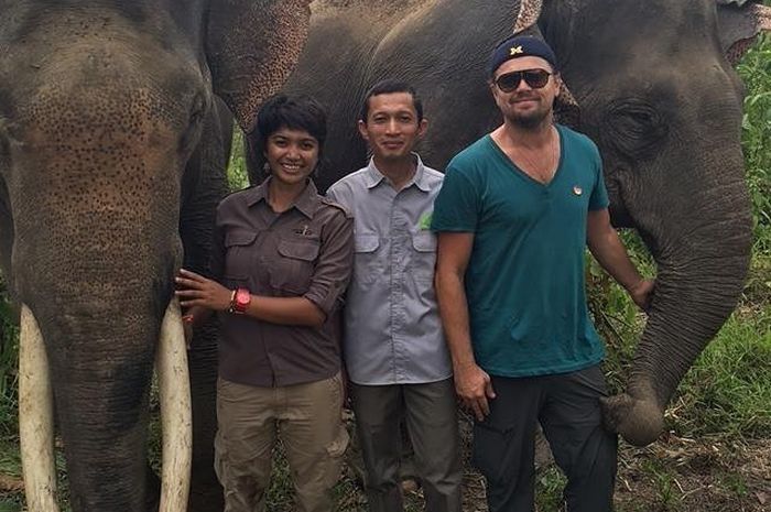 Leonardo DiCaprio saat kunjungan ke Aceh melihat gajah Sumatra yang terancam punah(hai.grid.id)