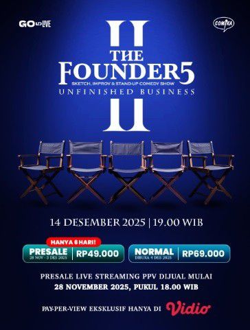 The Founder5 II: Unfinished Business bakal tayang dalam format live streaming di Vidio (Dok.Istimewa)