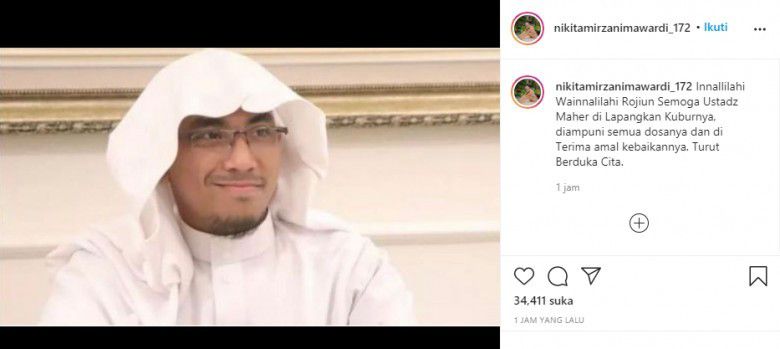 "Innallilahi Wainnalilahi Rojiun Semoga Ustadz Maaher di Lapangkan Kuburnya, diampuni semua dosanya dan di Terima amal kebaikannya. Turut Berduka Cita," tulis Nikita di Instagram.