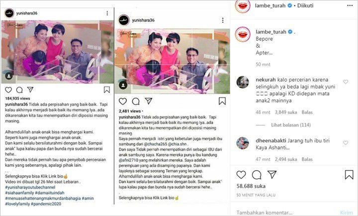 Padahal sebelumnya Yuni Shara menghimbau netizen untuk mengurusi keluarganya sendiri-sendiri.