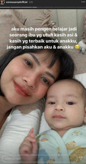 "Aku masih pengen belajar jadi seorang ibu yang utuh kasih ASI dan kasih yang terbaik untuk anakku. Jangan pisahkan aku dan anakku," tulis Vanessa di Insta Story.