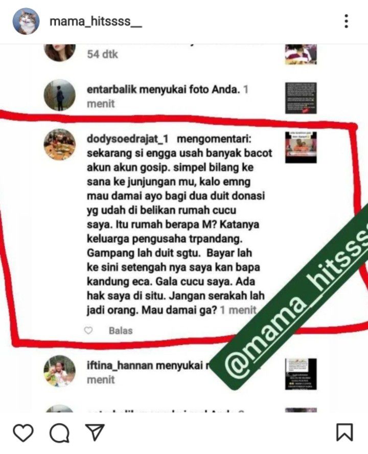 “Dulu duitnya dilaporin ke KEMENSOS, sekarang ribut bagi dua. Inget pak, itu uang donasi untuk Gala, bukan warisan bawaan dari VA. Mau uang banyak? Metong aja pak, nanti dapat uang ta'ziah dari orang-orang. Demi Allah kesel gue!!!!,” timpal netizen lainnya.