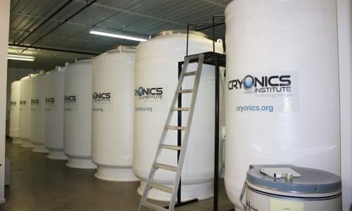 Tabung-tabung di Institut Cryonics yang merisi jasad orang yang dibekukan (the guardian.com)