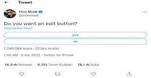 Polling yang dilakukan Elon Musk untuk fitur "Edit Button" (inews.id)