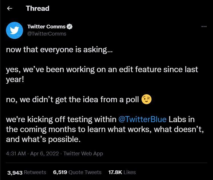 Namun masalahnya, siapa pun nantinya dapat memposting berita palsu, hanya untuk mengubahnya kembali nanti. Kemungkinan besar Twitter akan memberi tahu semua orang bahwa tweet tersebut telah diedit. Apakah kita akan dapat melihat revisi tweet sebelumnya atau tidak masih menjadi misteri.