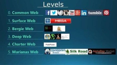Setelah Surface Web di lapisan paling luar internet. Kemudian datanglah, Bergie web, Deep web, Charter web dan kemudian web Mariana. Bahkan setelah web Mariana ada tiga lapisan lainnya, yaitu Level 6, Sup Kabut/Virus dan Sistem Primarch.