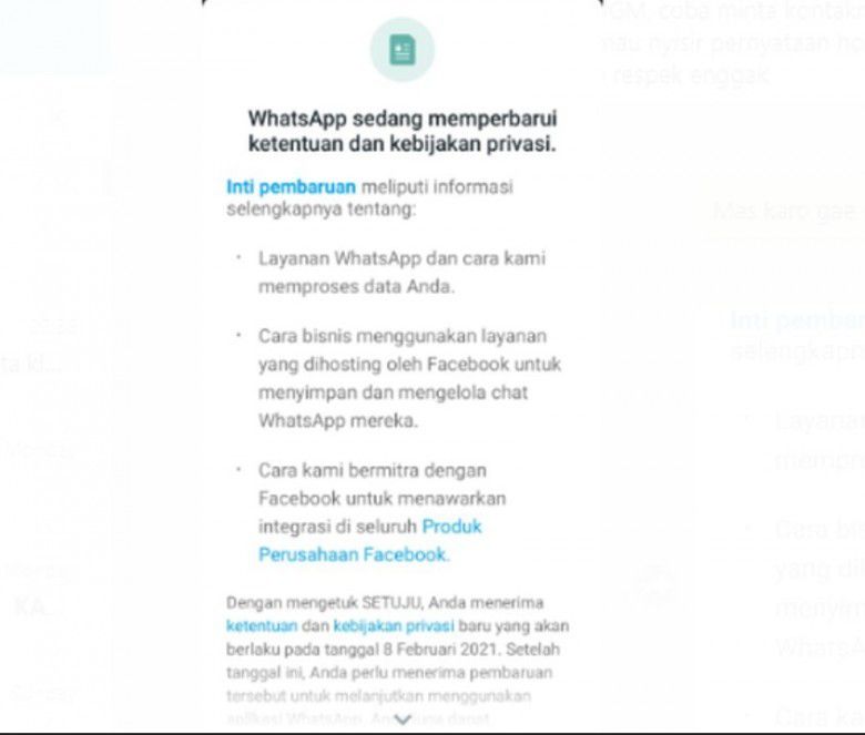 Aturan baru WA tentang berbagi data ke Facebook (kompas.com)