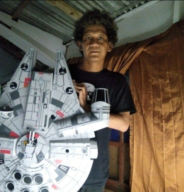 Lalu ia juga menggunakan triplek setebal 3 mm untuk armor dan scotlite sebagai pewarnanya. “Itu harganya Rp 25 juta. Ongkos (kirim) ditanggung mereka (pembeli) semua,” jelas Anwar yang mengaku masih pemula di bidang kerajinan replika.