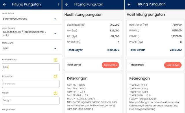 Jadi, jika kamu beli iPhone 12 128 GB di Singapura dengan harga 1.369 dolar Singapura atau sekitar Rp 14,8 juta, harga itu sudah melebih batas bebas bea masuk Bea Cukai yaitu 500 dolar AS.