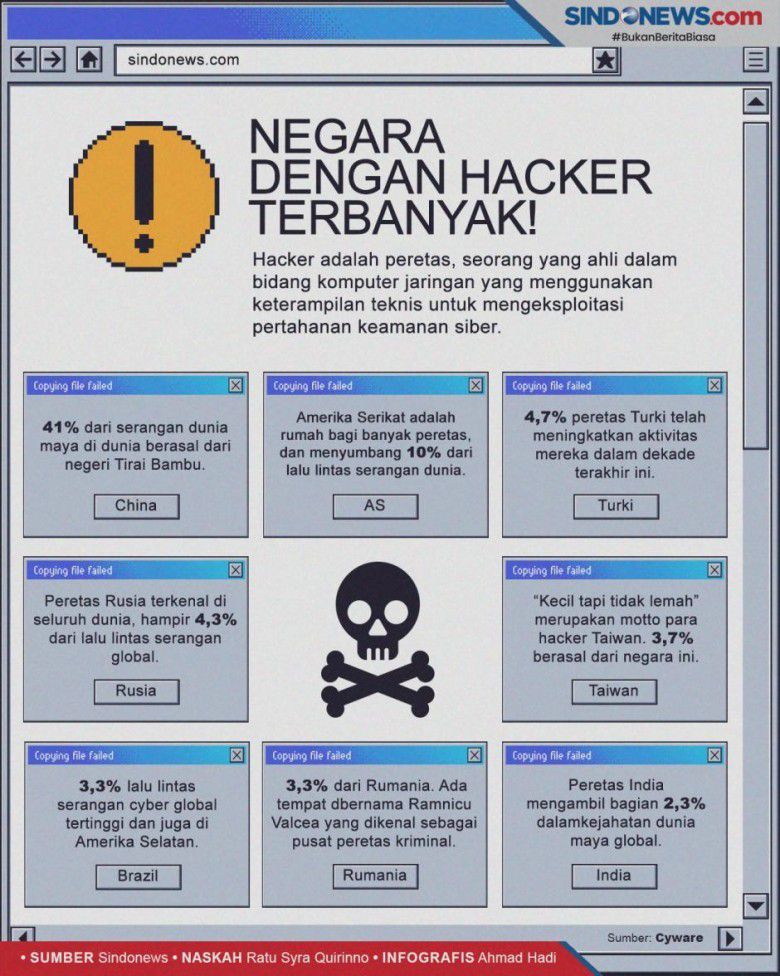 Negara dengan hacker terbanyak (infografis.sindonews.com)