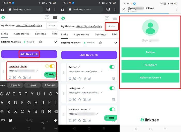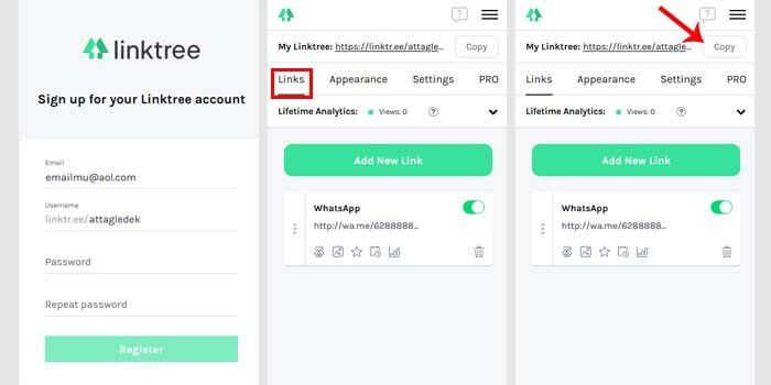 Untuk menambahkan tautan ke akunmu, pilih tab "Tautan". Di sana, tambahkan judul dan URL untuk tautanmu. Nantinya itu akan muncul di profilmu. Untuk menambahkan tautan tambahan, pilih "Tambahkan tautan baru".