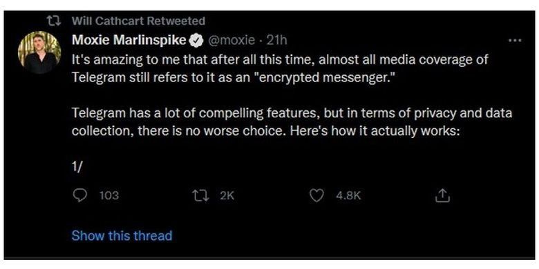 Tweet Moxie Marlinspike soal keamanan Telegram (tekno.kompas.com)