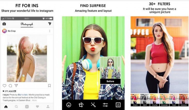 No Crop Square adalah salah satu aplikasi yang bisa kamu coba untuk membuat postingan Instagram sempurna tanpa ada cropping. Sistem di dalamnya akan secara otomatis mengolah foto dan memberikan background untuk foto yang akan diunggah. Plus, kamu juga bisa menikmati berbagai macam emoji dan filter keren.