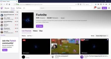 Kanal Fortnite di Twitch masih ramai viewer (twitch.com)