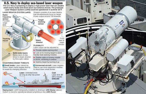 Pihak Angkatan Laut AS mengatakan bahwa penggunaan senjata laser itu adalah implementasi sistem tingkat pertama dari laser solid-state berenergi tinggi. Dan emang diinstal pada Armada Pasifik.