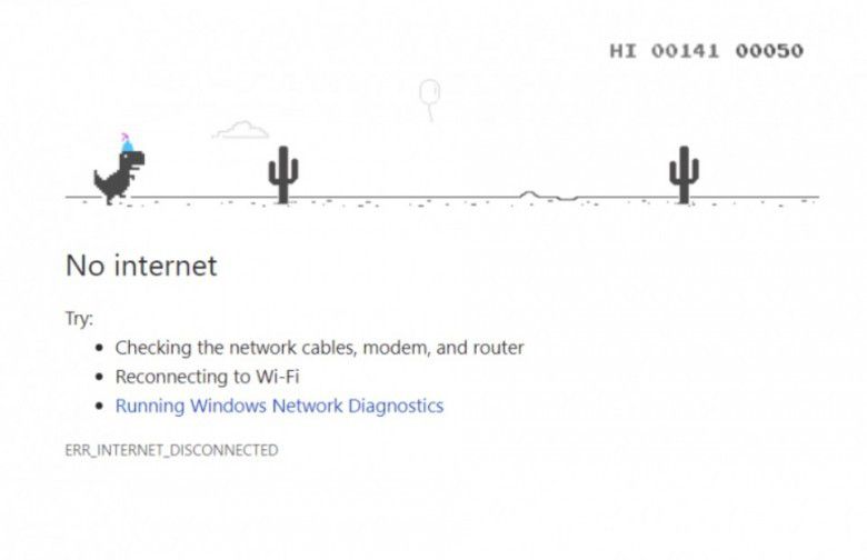 Saat internet putus pas lagi mengakses Google Chrome, kita akan menemukan seekor Dinosaurus. Kamu pasti tau kan kalo dinosaurus T-Rex piksel itu bisa dimainin?