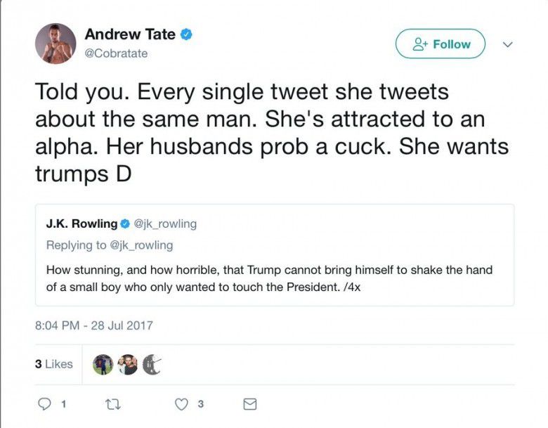 Salah satu tweet Andrew tate (thewrap.com)