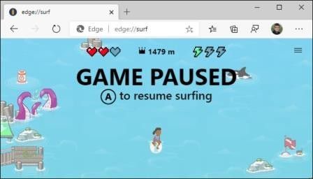 Setelah beberapa bulan melakukan pratinjau, Microsoft telah memperbarui Edge dengan gim Surf baru (tersedia kapan saja dengan mengetikkan edge://surf di bilah alamat) yang mengingatkan kembali ke gim SkiFree dari Windows di masa lalu.