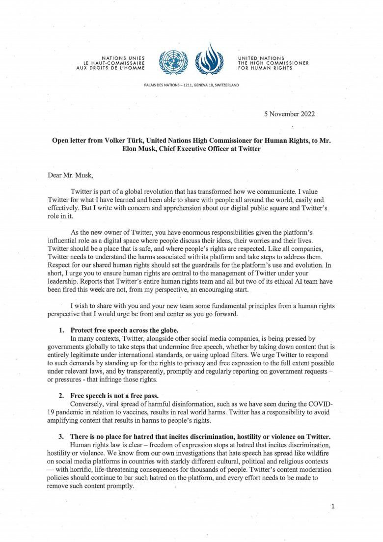 Türk, seorang pejabat PBB yang mengambil jabatannya sebagai kepala hak asasi PBB bulan lalu, mendesak Twitter untuk membela hak atas privasi dan kebebasan berekspresi semaksimal mungkin, di bawah undang-undang yang relevan, dan untuk secara transparan melaporkan tekanan pemerintah yang akan melanggar hak tersebut.