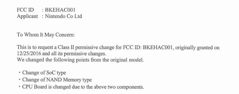Di dalam lampiran tersebut tertulis bahwa Nintendo meminta izin untuk mengubah "SoC". SoC sendiri merupakan chip-dalam-sistem dari Swtich alias prosesor Nvidia Tegra yang terdiri dari CPU dan chips grafis. Mereka juga memohon untuk mengubah "NAND memory" yang bisa kita sederhanakan sebagai chips yang tertanam dalam SSD Switch.