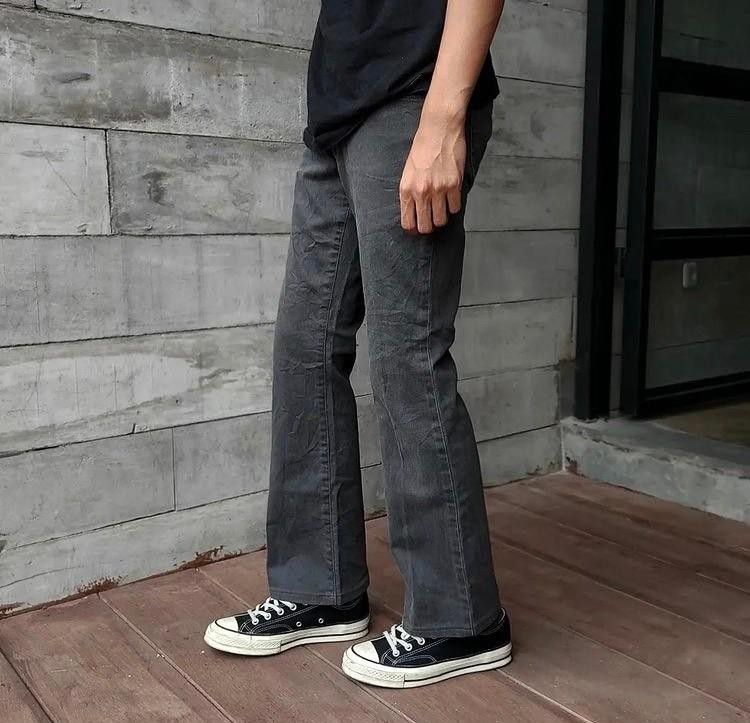 Celana boot cut memiliki potongan lurus dari pinggang hingga lutut, tetapi sedikit melebar di bagian bawahnya, sehingga memungkinkan kamu memakai sepatu boot di dalamnya. Model ini bisa dipakai baik untuk berbagai gaya dari kasual hingga semiformal.