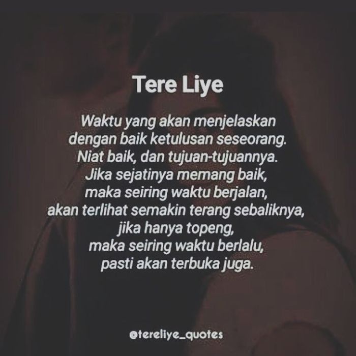 Membaca quote Tere Liye bisa memberikan pemahaman baru dan memperindah hari-harimu. Mungkin terkesan berlebihan. Tapi kalo kamu mendalami maknanya, hal itulah yang bakal kamu rasakan.