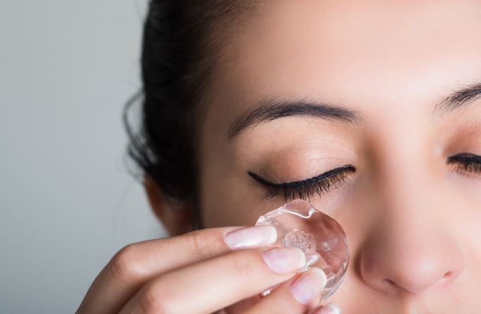 Coba basahi waslap bersih dengan air dingin. Sambil duduk, tempelkan waslap basah ke kulit di bawah dan sekitar matamu selama beberapa menit dengan tekanan ringan.